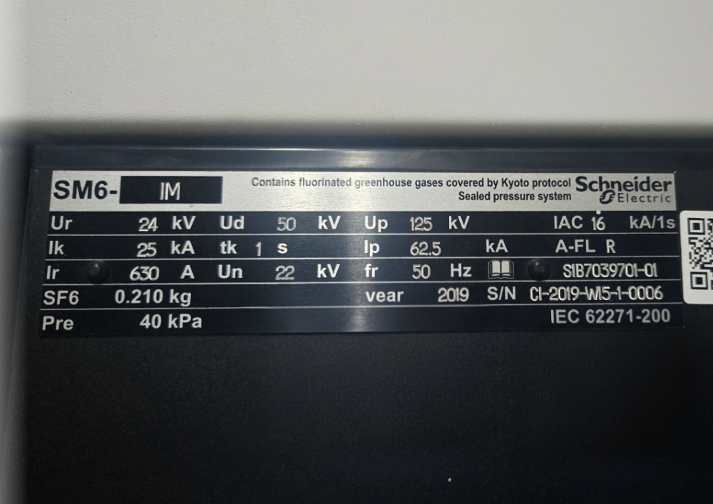 Trong ví dụ thiết bị Schneider dán nhãn A-FLR, giá trị ghi rõ IAC 16 kA/1s. Điều này nghĩa là tủ chịu được sự cố hồ quang với dòng ngắn mạch 16 kA trong thời gian 1 giây, vẫn bảo đảm an toàn cho con người. Đây là thông số quan trọng trong thiết kế hệ thống điện trung thế ở đô thị, nơi yêu cầu cao về mật độ lắp đặt và an toàn lao động.